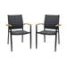Portals Outdoor Black Aluminum Stacking Dining Chair with Teak Arms - Set of 2