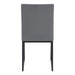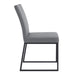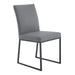 Impeccable style meets high-design in our contemporary Trevor dining chairs. It's Matte Black Steel frame and clean silhouette is upholstered in a beautiful Gray Faux Leather that is both neutral, soft to the touch and durable. The modern look of this dining chair allows it fit perfectly in your contemporary home. It is smart around a dining table, or as additional seating around your home.