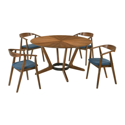 Original price - Original priceOriginal price$1,608.00$1,608.00 - $1,608.00Current price $1,608.00Santana 5 Piece Round Walnut Wood Dining Table Set with Blue Fabric