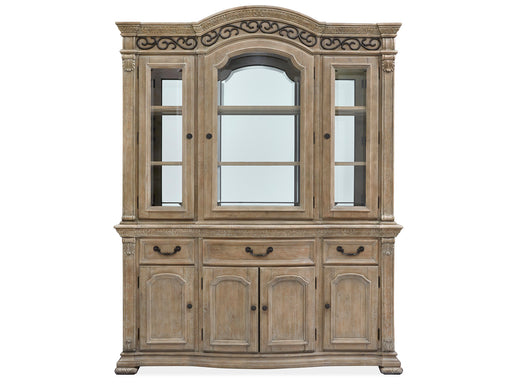 This is 69 In. Display Hutch Crafted of Poplar solids with Birch veneers Handsome hand-painted finish in custom, on-trend shade of Cotton Three-wa...