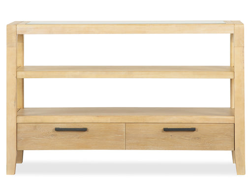 Bay Creek Collection by Magnussen Furniture Toasted Nutmeg finish 4 Felt lined top drawers. 1 Adjustable wood shelf behind left and right wood doo...