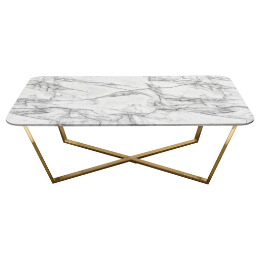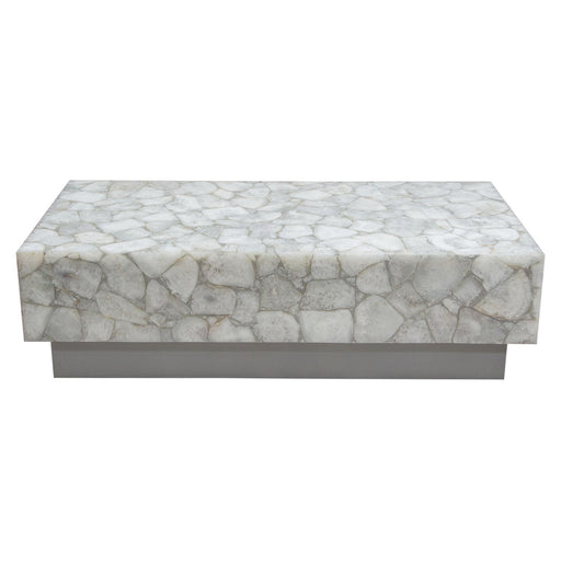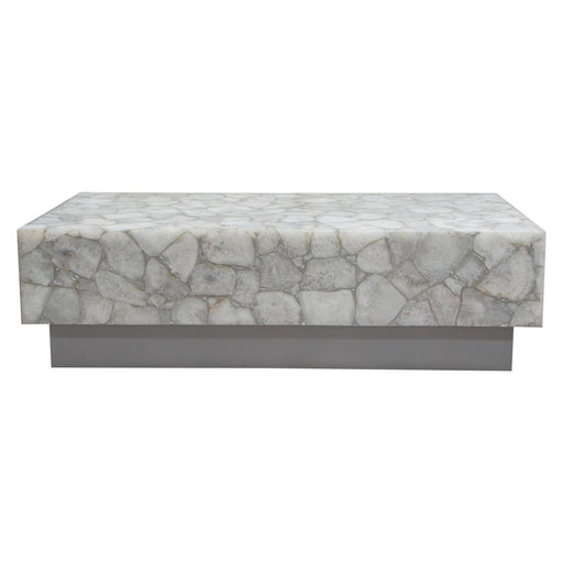 The Gemini Cocktail Table by Diamond Sofa is a stunning presentation of nature's beauty. Genuine White Quartz bedazzles with its rich variations a...