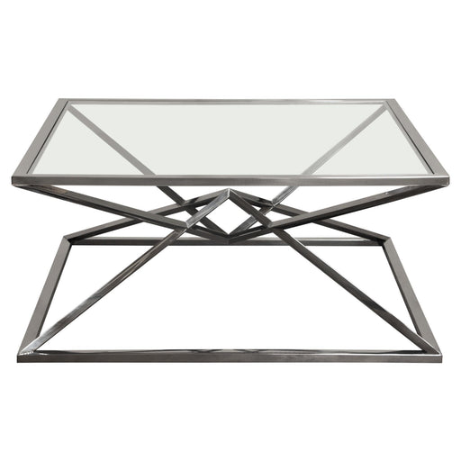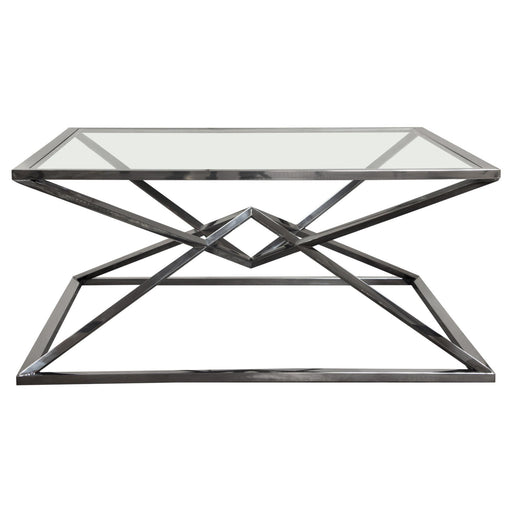 Original priceOriginal price - Original priceOriginal priceCurrent price $1,100.00$1,100.00 - $1,100.00Current price $1,100.00Aria Square Stainless Steel Cocktail Table w/ Polished Black Finish Base & Clear, Tempered Glass Top by Diamond Sofa