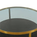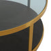 The clean lines and rich gold accents seen throughout this detailed round coffee table give way to an elegant and contemporary appearance.