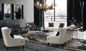 High on luxury, the Skyline Collection is the ultimate in suave sophistication, abundant comfort, and classy metropolitan design. The sofa's chic and high profile design is accentuated further with its winged, button-tufted back while the occasional tables are statement pieces worthy of any eccentric modern loft or elegant contemporary home, artfully combining a laser-cut stainless steel base and open-pore oak top.