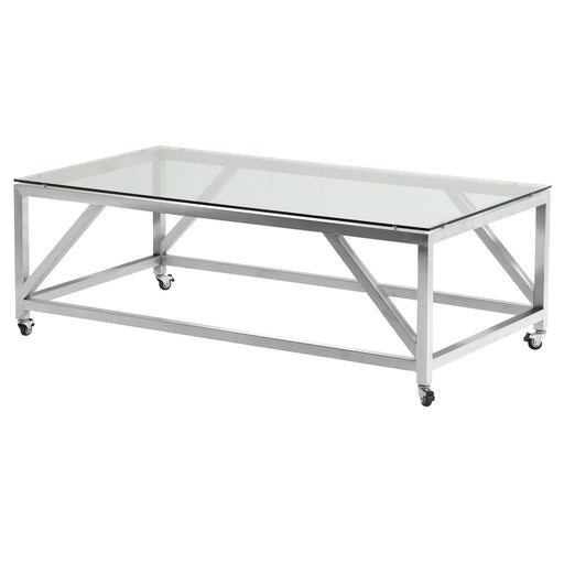 Original price - Original priceOriginal price$1,130.00$1,130.00 - $1,130.00Current price $1,130.00Enessa Contemporary Rectangular Coffee Table with Wheels in Brushed Stainless Steel with Tempered Glass Top