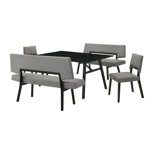 Original price - Original priceOriginal price$1,778.00$1,778.00 - $1,778.00Current price $1,778.00Channell 5 Piece Black Wood Dining Table Set with Benches in Charcoal Fabric