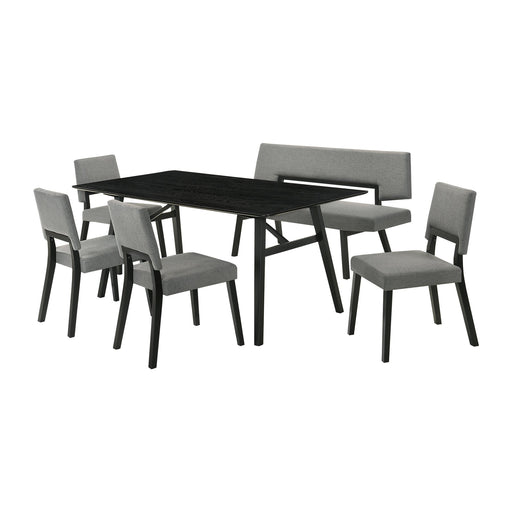Original price - Original priceOriginal price$1,654.00$1,654.00 - $1,654.00Current price $1,654.00Channell 6 Piece Black Wood Dining Table Set with Bench in Charcoal Fabric