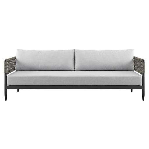 Upgrade your patio with the Armen Living Alegria Aluminum and Rope Outdoor Sofa in Black and Gray, a stylish and durable choice for outdoor seating...