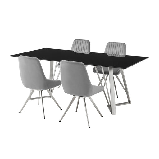 The Armen Living Messina Gray Velvet and Walnut 5 Piece Dining Set is a necessity for any modern or contemporary household. The soft velvet upholst...