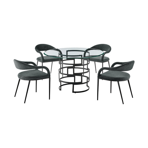 Original price - Original priceOriginal price$2,010.00$2,010.00 - $2,010.00Current price $2,010.00Cirque Channell 5 Piece Black Wood Dining Table Set with Charcoal Fabric