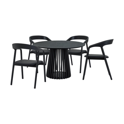 5 Pc. Dining Set, BlackFeatures: Mid-Century Modern Black Rubberwood, Oak Veneer, Engineered Wood Spindle Back Molded Seats Shaker Legs