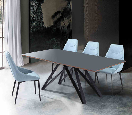 The Solange Concrete and Black Metal Rectangular Dining Table is a work of art produced by Armen Living. The black edge metal legs feature a hex-gr...
