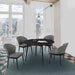 Hints of Scandinavian design and a mid-century modern feel come together to create the perfect space to share a meal with friends and family. With the 48" diameter table, you can easily pull up a few extra chairs and easily accommodate more guests. Round tables are great because they can accommodate the most people. The tall, rounded seat back of the Juno chair features ergonomic properties to keep your back healthy and properly aligned.