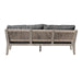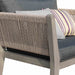 The Condesa patio furniture set with table is a luxurious addition to your patio, backyard, pool area, or screened in porch. This small patio furniture set is available in gray acacia wood with gray rope and your choice of charcoal or gray cushions.