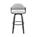 The Daxton 26" Gray Faux Leather and Black Wood Bar Stool will complement the existing decor in your home and help elevate it to the next level. The Daxton features a 360-degree swivel function that allows you to keep the conversation going in every direction. The Daxton is also crafted with a ring footrest - meaning you can relax your feet regardless of the direction you decide to turn! The plush seat cushion is padded with high-density foam that will provide you with immense comfort.