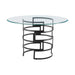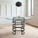 Introduce an aura of sophisticated drama and elegance to your home with our Diaz Contemporary Round Dining Table in Glass top and Matte Black Iron base by Armen Living. This dining table captivates with its refined geometry and dynamic blend of materials, making a lasting impression in any setting. The round glass top delicately rests upon a sleek metal base. The bold curves and open design are accentuated by the brushed stainless steel finish to bring modern luxury to your home's decor.