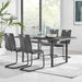 Fenton and Pacific 5 Piece Modern Rectangular Dining Set with Black Base in Black Melamine Wood and Gray Fabric