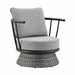 Enhance your outdoor space with the Giotto Wicker and Aluminum Outdoor Chair in Black and Dark Gray. Designed to add a modern touch to your backyard, patio, screened-in porch, or pool area, this outdoor chair combines functionality with aesthetic appeal. The 360-degree swivel function of the lounge chairs allows for easy movement, making it perfect for entertaining or relaxing with friends and family.
