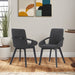 - COLOR PREFERENCES - The Greisen chairs are available to you in your choice of a charcoal polyester or a Gray faux leather. Both Greisen chairs come with a black brushed wood finish on the legs and arms. Let your imagination be your guide and combine both fabric options into your dining room for a dynamic look where texture and color live and complement each other.