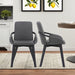 - COLOR PREFERENCES - The Greisen chairs are available to you in your choice of a charcoal polyester or a Gray faux leather. Both Greisen chairs come with a black brushed wood finish on the legs and arms. Let your imagination be your guide and combine both fabric options into your dining room for a dynamic look where texture and color live and complement each other.