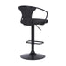 Ian Contemporary Adjustable Barstool in Black Powder Coated Finish and Black Fabric