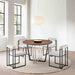 Joana Anastasia 5 Piece Round Walnut Dining Table Set with Matte Black Iron and Light Gray Fabric