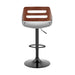 Karter Adjustable Gray Faux Leather and Walnut Wood Bar Stool with Black Base