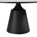 It features a perfectly rounded tabletop perched upon an eye-catching pedestal base. Its Sintered Stone tabletop depicts the graceful and natural textures of white marble to add a polished touch to your casual or formal meals. This tabletop is resistant to etching, scratches, burns, and stains as a durable yet elegant alternative to quartz. It is perched upon a black metal base to attain contrast and a versatile appeal.