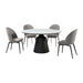 Add a stylish dining set to your dining room or kitchen with the Knox Sunny 5-piece dining set. The refined and distinctive silhouette of the dining table attains a statement-making appeal in any room. It features a perfectly rounded tabletop perched upon an eye-catching pedestal base. Its Sintered Stone tabletop depicts the graceful and natural textures of white marble to add a polished touch to your casual or formal meals.