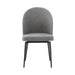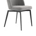 This tabletop is resistant to etching, scratches, burns, and stains as a durable yet elegant alternative to quartz. It is perched upon a black metal base to attain contrast and a versatile appeal. The soft curves of the wrap-around back of this dining chair highlight the thin tapered legs, inviting you to linger at the dining table for as long as you want. Soft, rounded edges give these chairs a sculptural aesthetic that makes them a welcome addition to your home.
