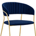 The Armen Living Messina and Nara Blue Velvet and Walnut 5 Piece Dining Set is simplicity and refinement placed into one set. The velvet upholstery is flawlessly wrapped around the rounded seatback, while the upholstery on the seat covers the incredibly soft foam-padded cushion. The beautiful gold metal frame of the Nara is built with durability and sturdiness in mind, giving you years of enjoyment.