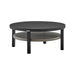 Palma Outdoor Patio Round Coffee Table in Black Aluminum with Gray Wicker Shelf