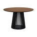 This 5-piece dining set comes complete with the Apache Black Oak Wood and Faux Leather Dining Chairs and one of 3 different color variations for the Pasadena table. This round dining table is available in an all-black oak finish, an all-natural oak finish, or a walnut tabletop finish with a black base to suit any room.