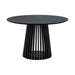 This round dining table is available in an all-black oak finish or a walnut tabletop finish with a black base to suit any room.