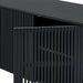 The versatility of these chairs extends beyond the dining room; they make for stylish additions such as vanity chairs or accent pieces, enhancing the aesthetic appeal of any room. The retro allure of mid-century design is present in the slatted paneling on the column structure of the pedestal base, further elevating its appeal, whilst lending its unmistakable character and attractive, architectural-like quality. The buffet is a seamless blend of form and utility.