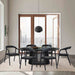 This table features a beautiful solid wood base and concrete bottom for added stability. The Apache chairs showcase a sophisticated blend of Black Oak Wood and Faux Leather, creating a sleek and timeless aesthetic. The upholstered dining chair design provides both comfort and style. Their contemporary design ensures they seamlessly integrate into various interior styles, elevating the ambiance of any space.