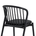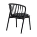 The Pasadena Echo dining set is available in an all-black finish with black faux leather upholstery, a black finish table with walnut chairs and black faux leather upholstery, or a black base table with walnut tabletop and chairs with black faux leather upholstery.