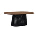 The retro allure of mid-century design is present in the slatted pedestal base, further elevating its appeal, whilst lending its unmistakable character and attractive, architectural-like quality. This oval dining set can be used in formal or casual dining settings.