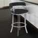 The Prinz bar or counter stool is available in your choice of a brushed stainless-steel finish with black or gray faux leather upholstery or a black metal finish with gray faux leather upholstery.