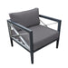 Make the most of your outdoor space with this Armen Living Sonoma 4-piece set. Each item features a frame crafted to perfection creating a sleek and clean look with a modern flare. The Alum exterior frame is UV resistant and helps protect against the effects of inclement weather, while the 100% polyester cushions are water proof, durable but yet comfortable for you and your guests.