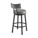 Zelda Swivel Bar Stool in Black Finish with Gray Faux Leather