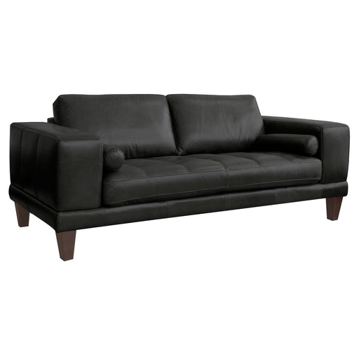 Original price - Original priceOriginal price$3,030.00$3,030.00 - $3,030.00Current price $3,030.00Wynne Contemporary Sofa in Genuine Black Leather with Brown Wood Legs