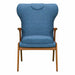 Ryder Mid-Century Accent Chair in Champagne Ash Wood Finish and Blue Fabric