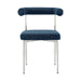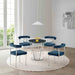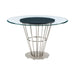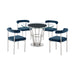 Veronica Shannon 5 Piece Round Glass Dining Table Set with Brushed Stainless Steel and Blue Fabric