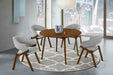 The Arcadia and Talulah 48" Round Gray and Walnut Wood 5 Piece Dining Set is the perfect modern addition to any kitchen or dining room. This 5-piece dining set will open your dining room with its clean, round table and modern chairs. Meticulous craftsmanship and expert design have gone into the creation of this dining set, which is as functional as it is stylish.