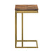 Faye Rustic Brown Wood C-Shape End table with Antique Brass Base