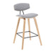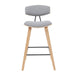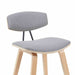 Fox Modern Swivel Counter Height Bar Stool with Grey Upholstered Seat and Patterned Oak Wood Frame