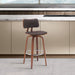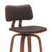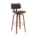 Pico 30" Swivel Walnut Wood Bar Stool in Brown Faux Leather with Chrome