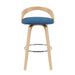 Sonia Modern Swivel Bar Height Stool with Blue Upholstered Seat and Patterned Oak Wood Finish